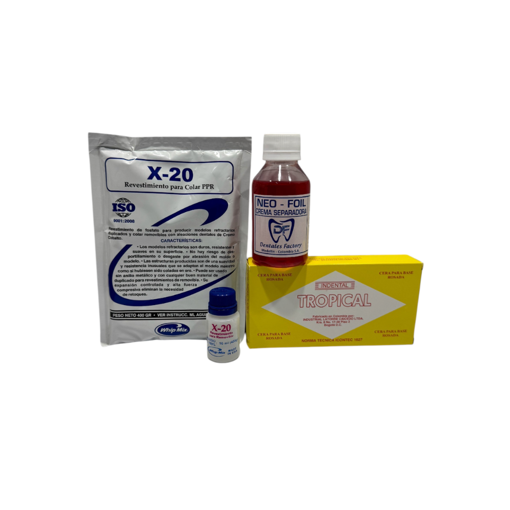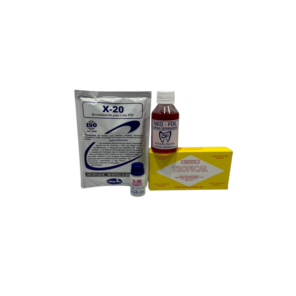 -14%Por la compra de Investimento X20, caja de cera base tropical y Neo Foil 120, obtén un descuento especial en un conjunto ideal para procesos de encerado, modelado y revestimiento en laboratorio dental. El Investimento X20 garantiza estabilidad y precisión en el colado, la cera base tropical facilita un modelado uniforme y adaptable, y el Neo Foil 120 permite un mejor manejo y adaptación en técnicas de laboratorio, optimizando resultados en la elaboración de estructuras dentales.
